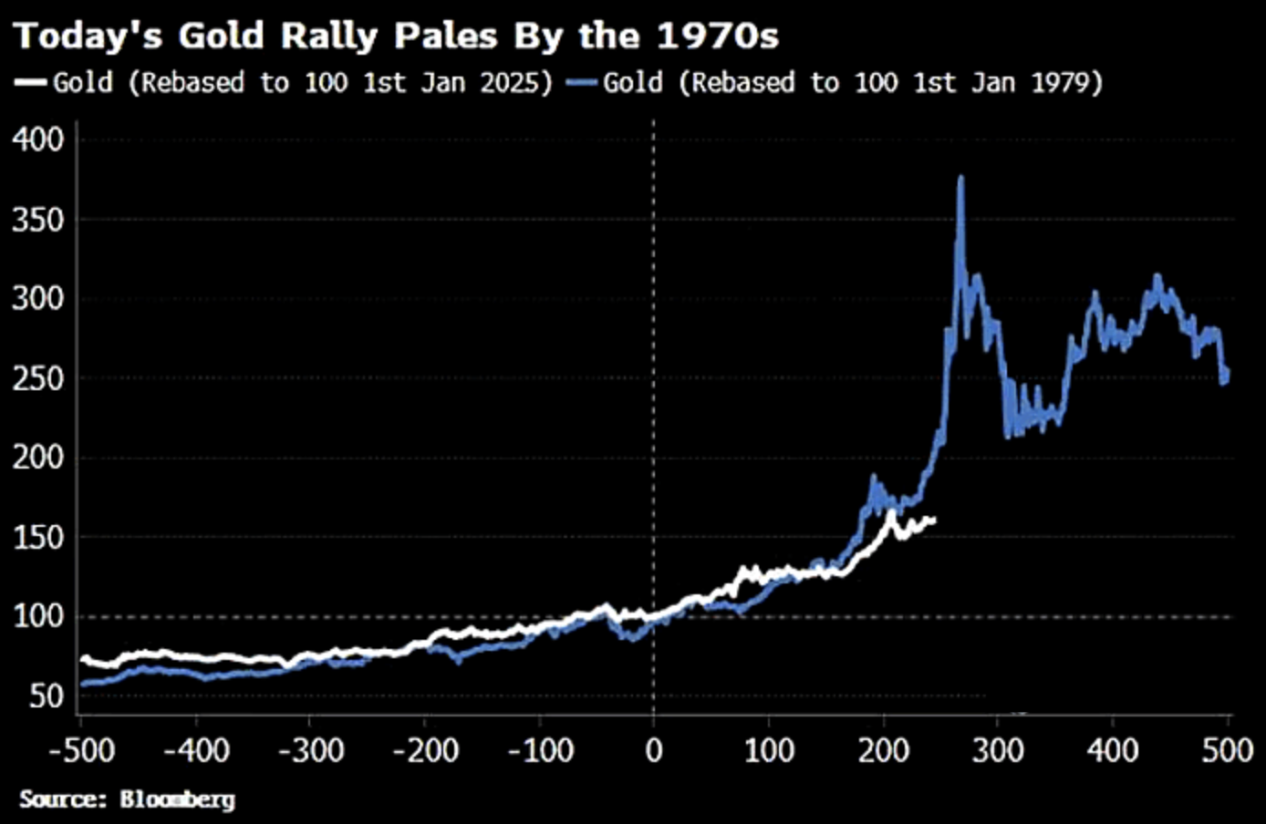To explain, the white line above tracks gold’s indexed performance since Jan. 1, 2025, while the blue line above tracks its indexed performance from Jan. 1, 1979. As you can see, the yellow metal had a lot of runway during the historical surge; and given the similar fundamental developments occurring today, gold’s bull market may have plenty of room to run.