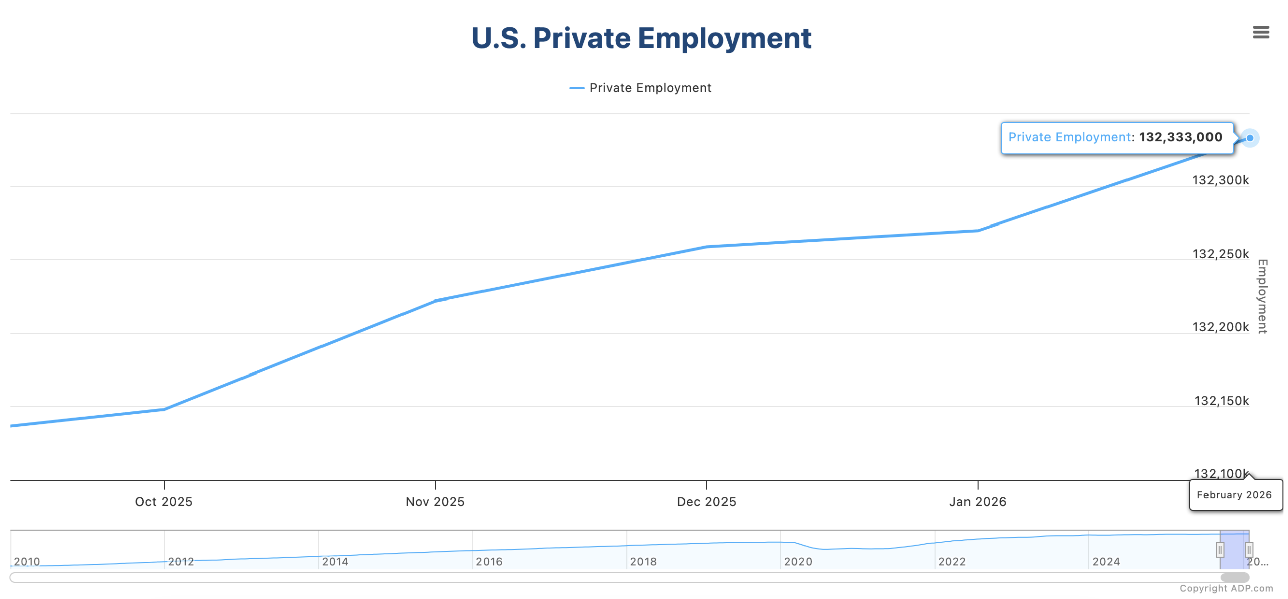 “Hiring jumped in February, delivering the best showing for job gains since November 2025. Construction, education, and health services led the growth.” Chief Economist Dr. Nela Richardson, added, “We’ve seen an increase in hiring and pay gains remain solid, especially for job-stayers.”