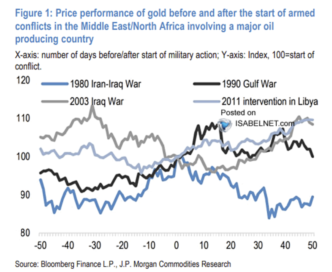However, research from J.P. Morgan highlights how Middle East conflict is typically bullish for gold.
